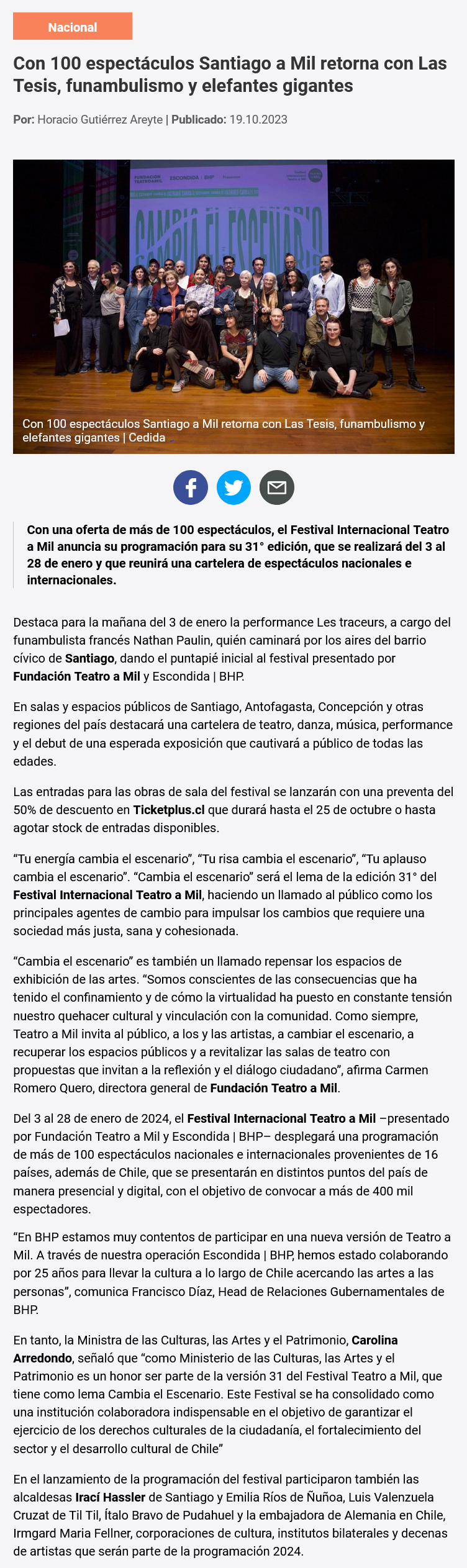 Festival Internacional Teatro a Mil lanza su programación 2024 - (radio.uchile online)