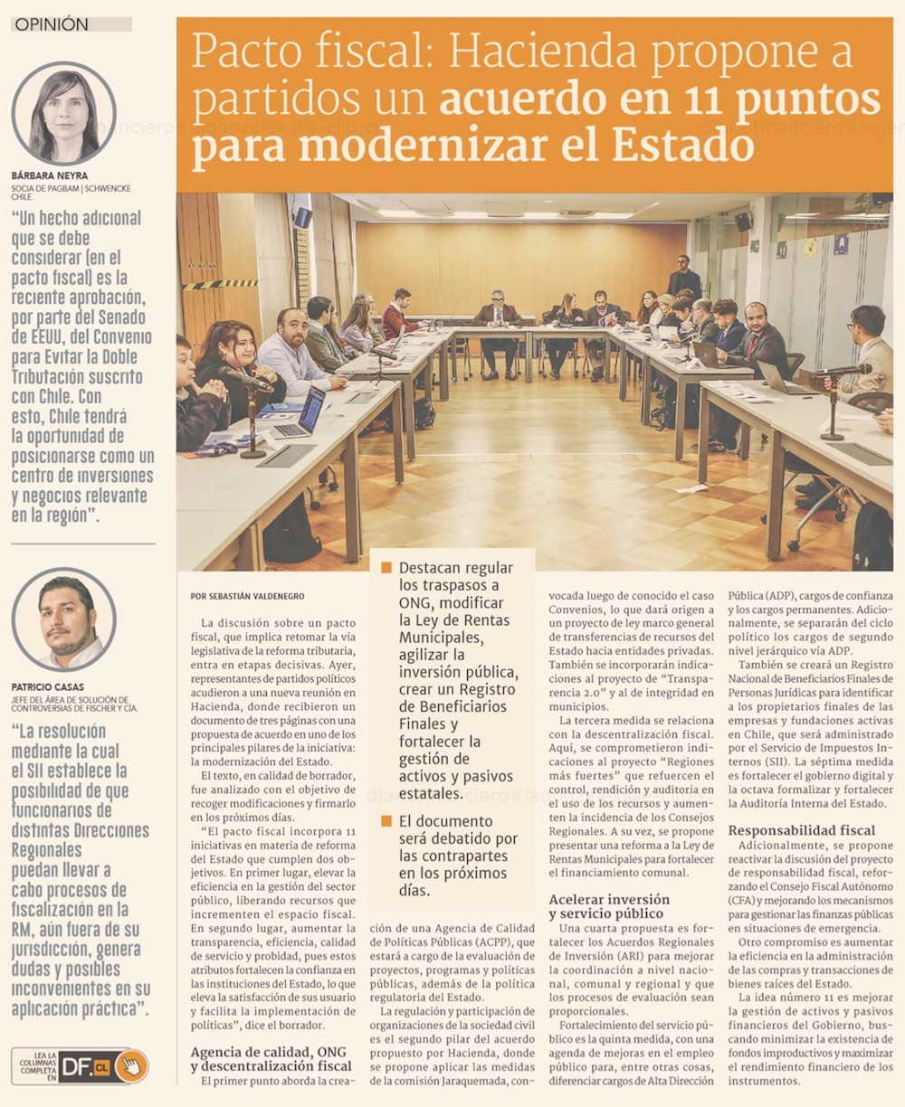 Ministerio de Hacienda plantea 11 medidas para avanzar hacia un pacto fiscal - (El Mercurio de Santiago)