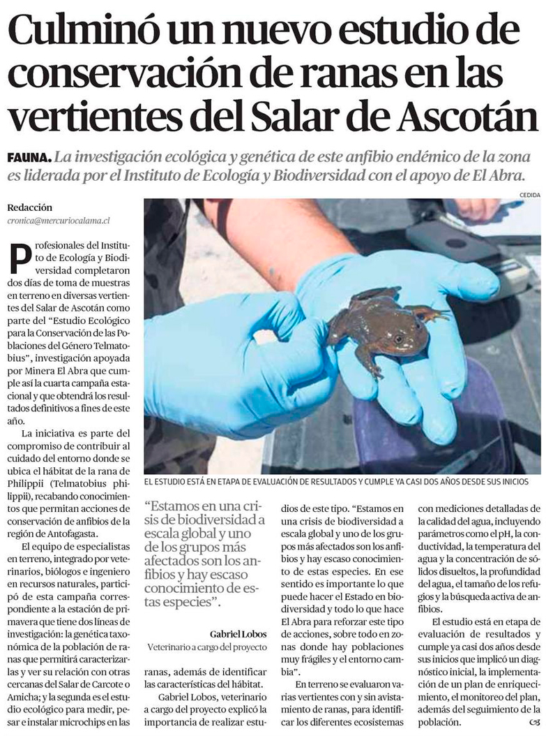 Culminó cuarta campaña de estudio de conservación de ranas endémicas del Salar de Ascotán - (elamerica)