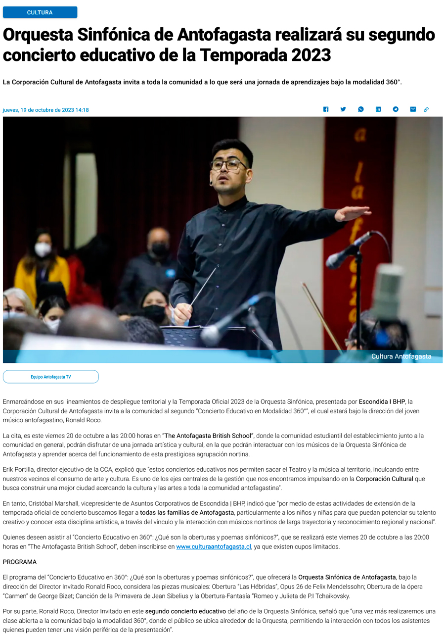 Orquesta Sinfónica de Antofagasta realizará su segundo concierto educativo de la Temporada 2023 - (timeline)