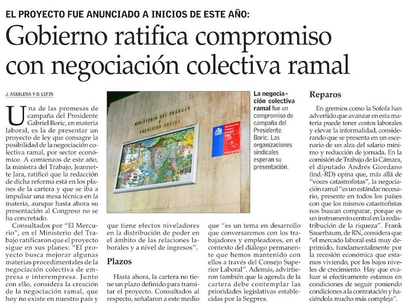 Negociación ramal sigue en la agenda del gobierno y la CUT espera anuncio - (Pulso)