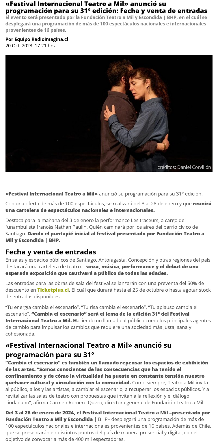 Festival Internacional Teatro a Mil anunció toda su programación para 2024 - (g5noticias.cl)
