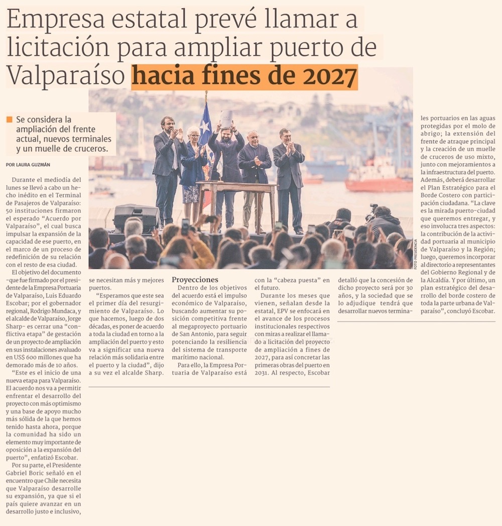 Expertos enjuician plan portuario en Valparaíso y lo ven compatible con megapuerto en San Antonio - (El Mercurio de Santiago)