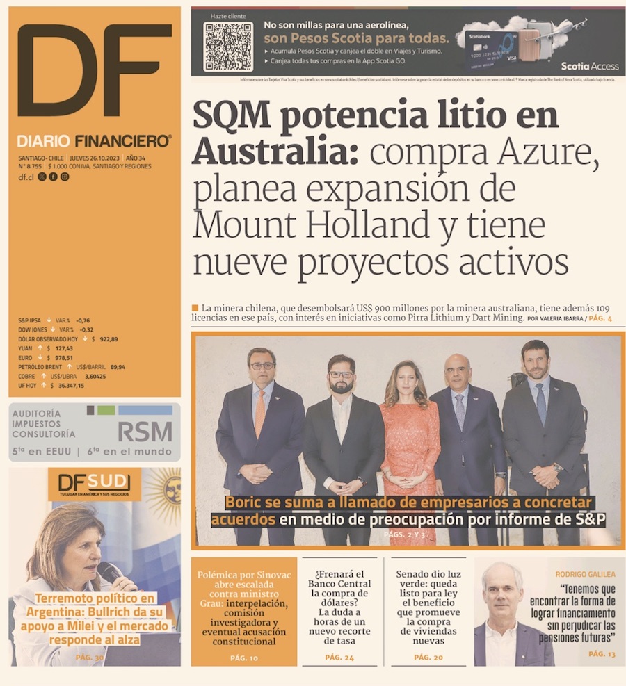 SQM acuerda la adquisición de minera australiana por unos US$ 1.000 millones - (El Mercurio de Santiago)