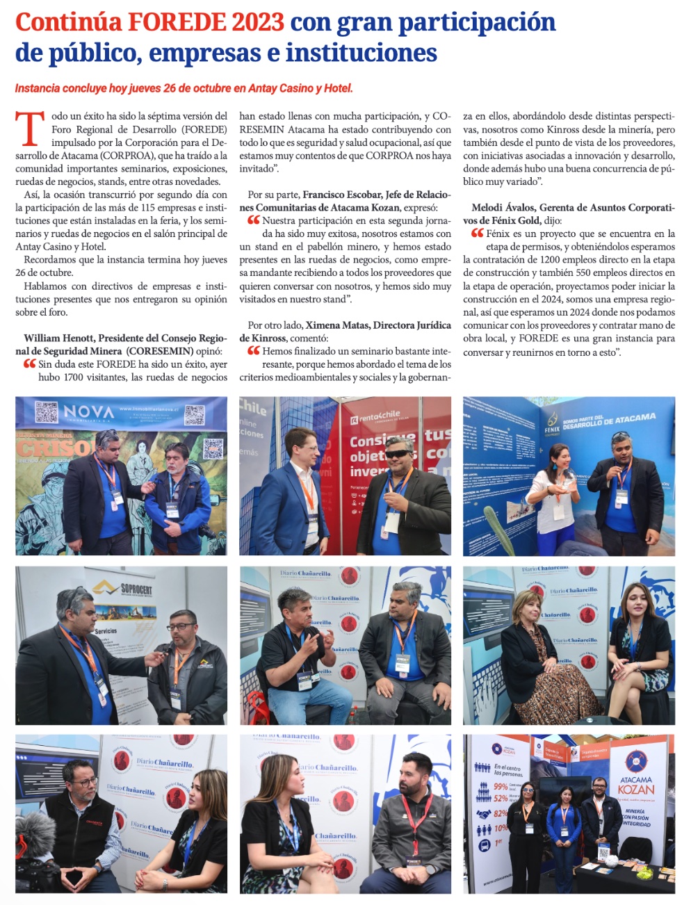 Empresas comparten su experiencia en sostenibilidad y valor compartido en 2do seminario del Forede 2023 - (El Diario de Atacama)