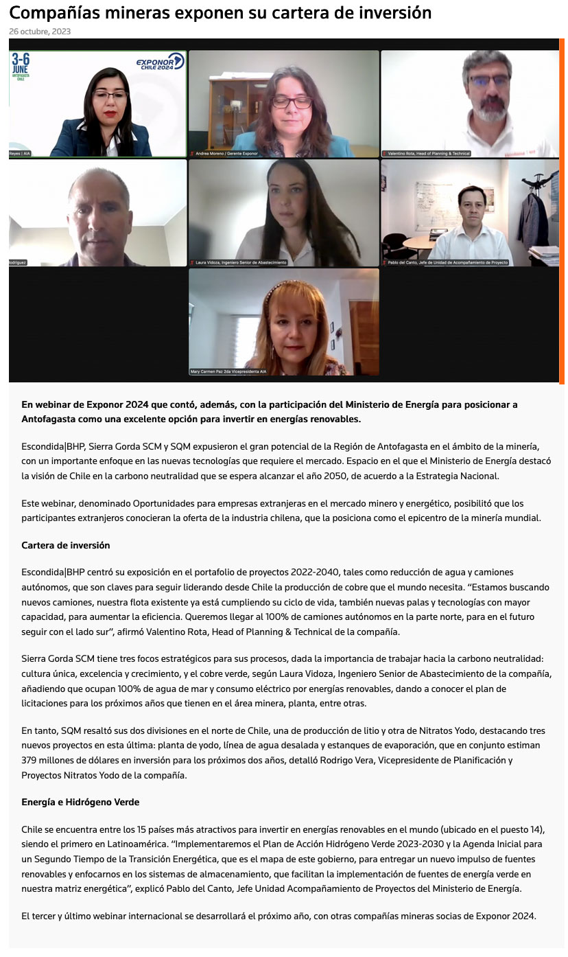 Compañías mineras exponen su cartera de inversión - (mvcomunicaciones.cl)