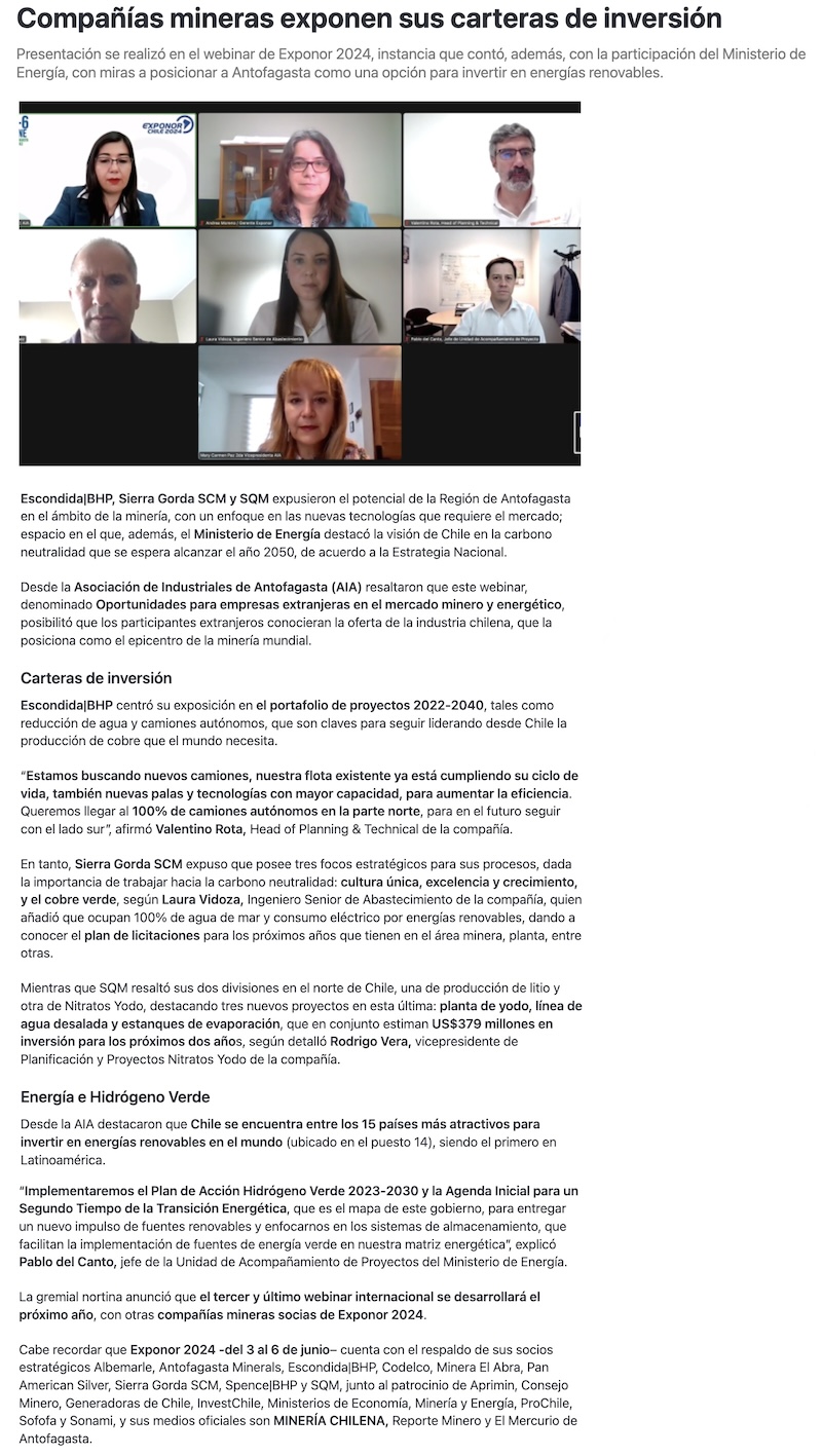 Escondida, Sierra Gorda y SQM exponen cartera de inversiones para materializar sus proyectos - (revistacrisol.cl)