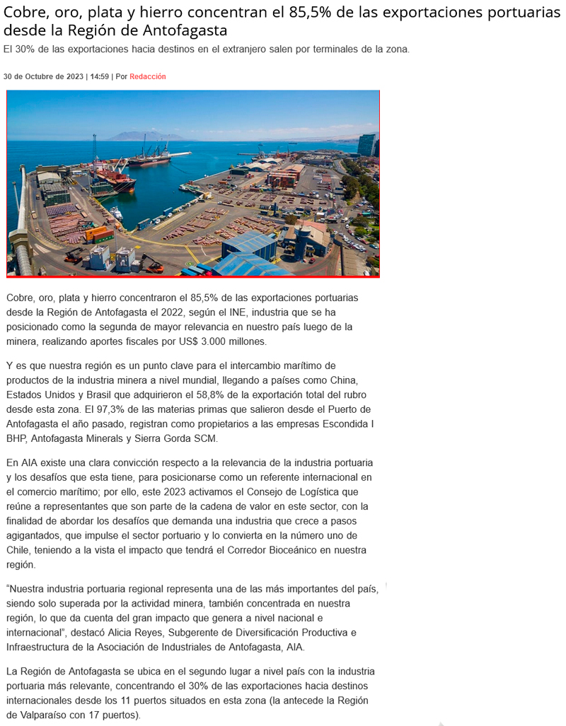 Antofagasta, líder en exportación portuaria minera - (diarioangamos)