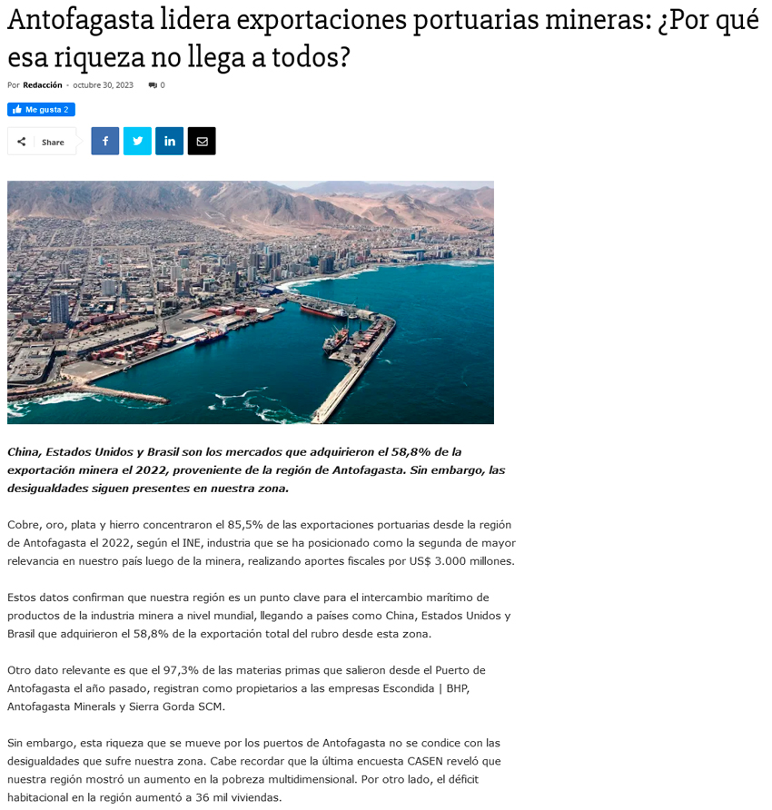 Antofagasta, líder en exportación portuaria minera - (diarioangamos)