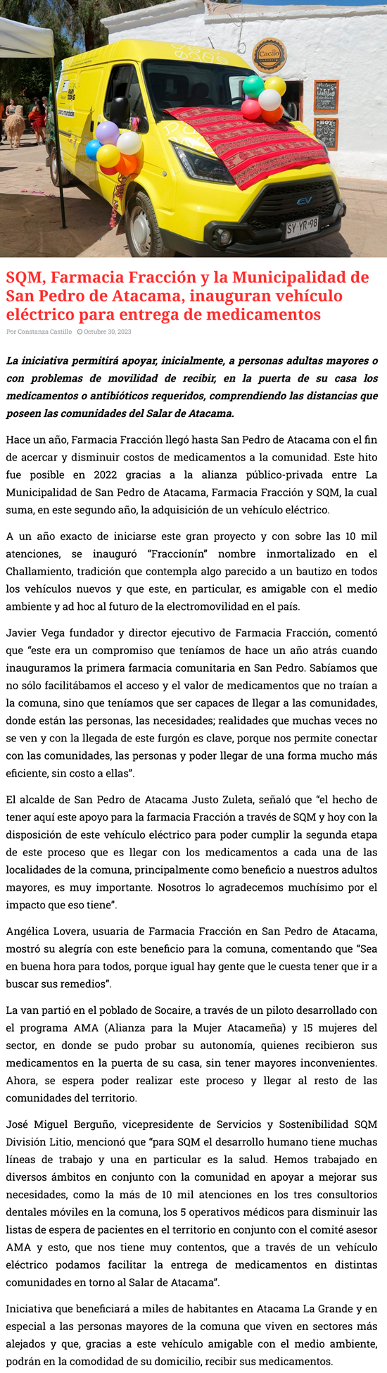 Inauguran vehĂculo elĂ©ctrico para entrega de medicamentos - (El Mercurio de Antofagasta)