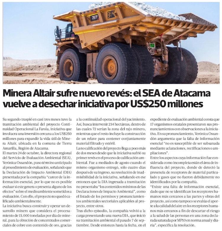 SEA de Atacama pone término anticipado a proyecto minero de US$ 250 millones - (DF Online)