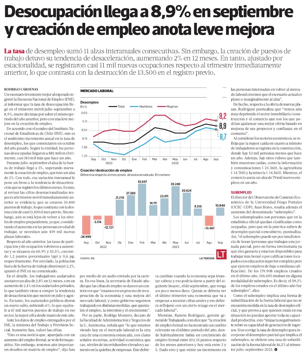 Desocupación completa once meses al alza y brecha prepandemia suma 454 mil empleos - (El Mercurio de Santiago)