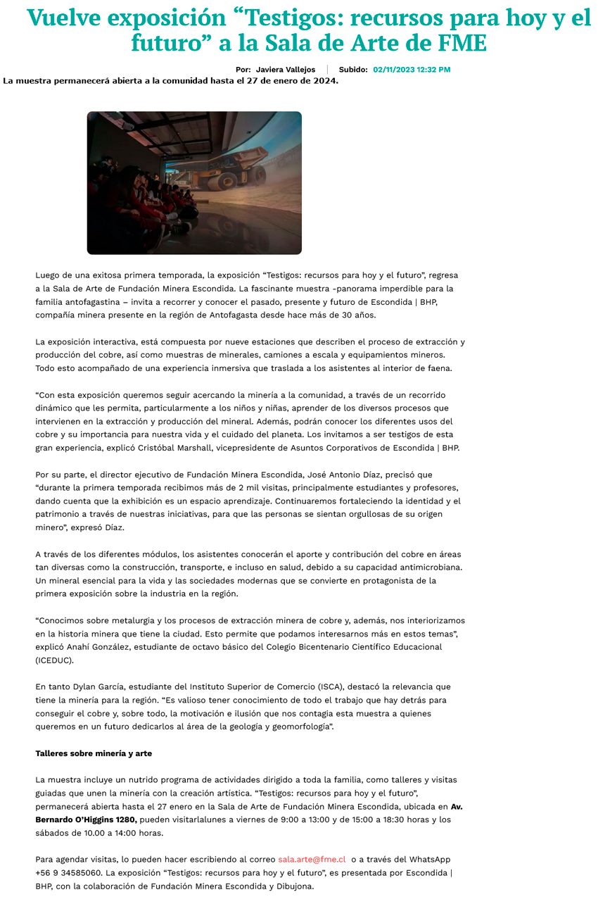 Vuelve exposición “Testigos: recursos para hoy y el futuro” a la Sala de Arte de FME - (termometro.cl)