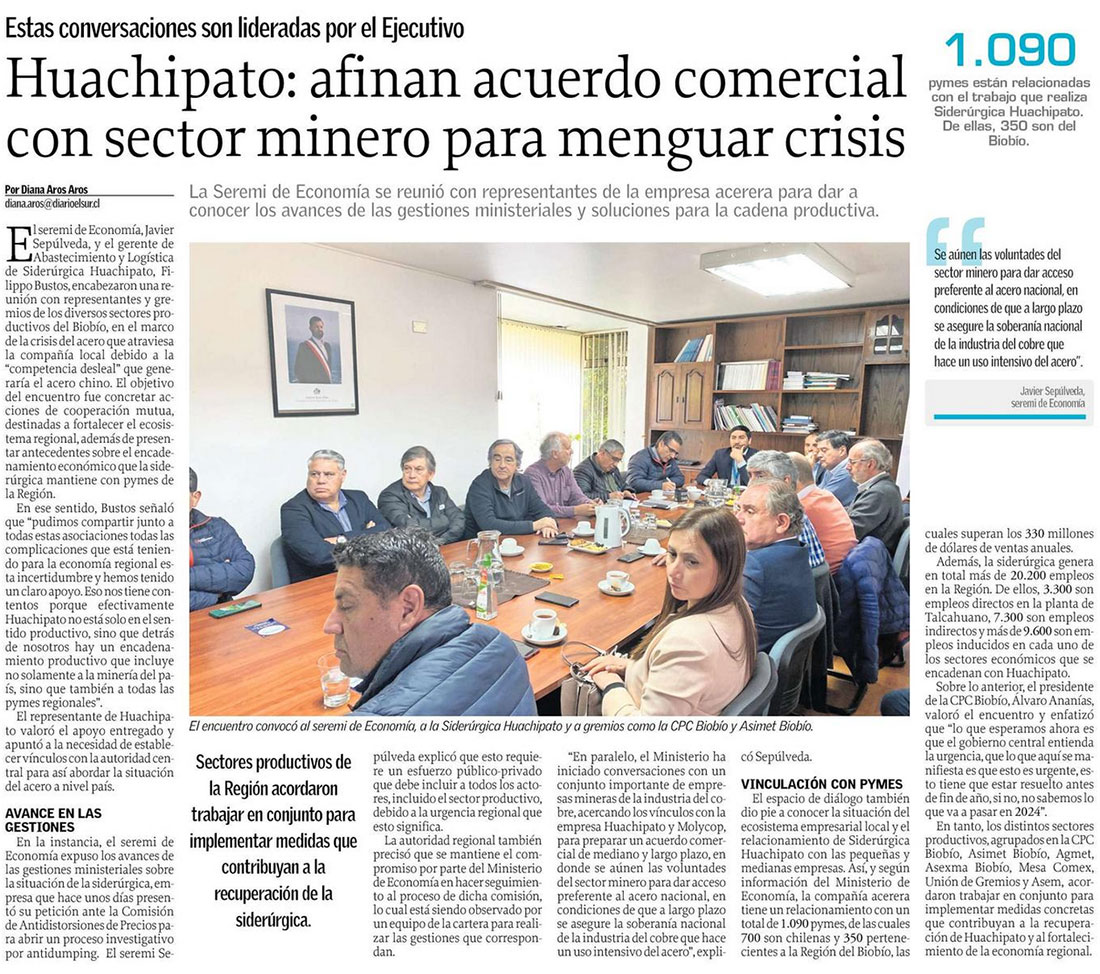 Siderúrgica Huachipato cuenta con 1.090 pymes en su encadenamiento - (Diario Concepción)