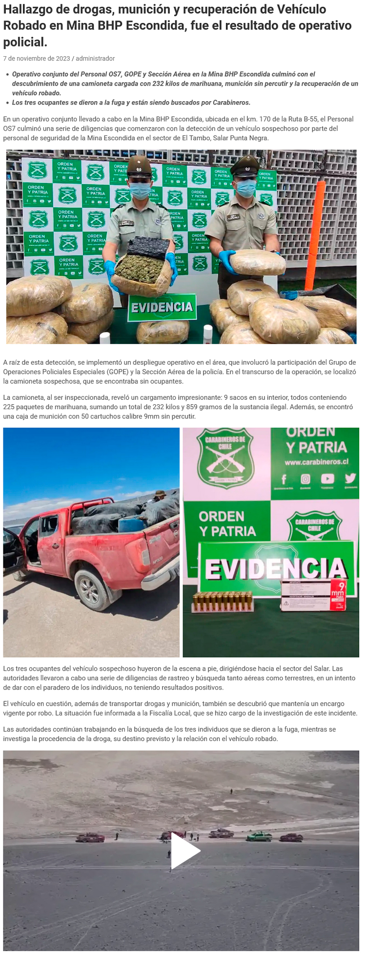 Decomisan 232 kilos de marihuana en minera BHP Escondida - (antofagastaonline.cl)