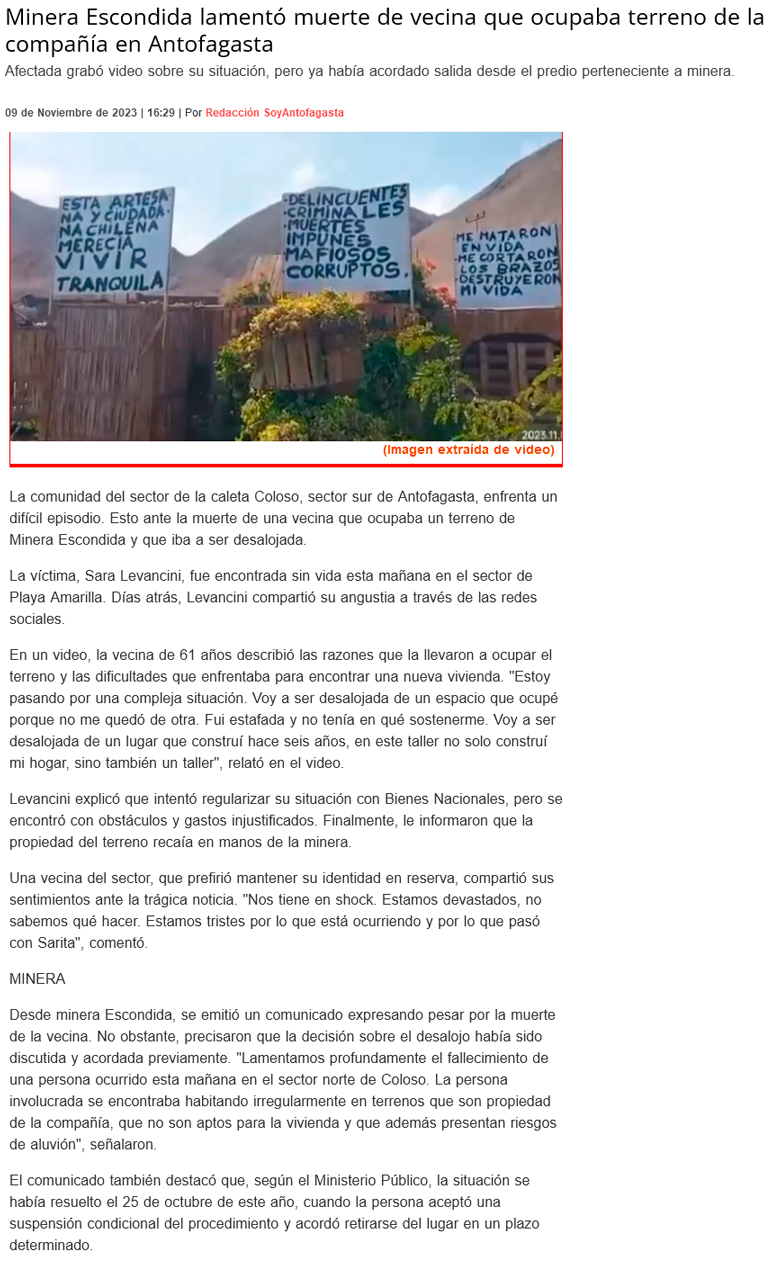 “Me quitaron mi Edén”: Mujer se habría quitado la vida ante inminente desalojo de terreno perteneciente a Minera Escondida en Antofagasta - (diarioantofagasta)