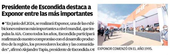 Presidente de Escondida destaca a Exponor entre las más importantes - (El Mercurio de Antofagasta)