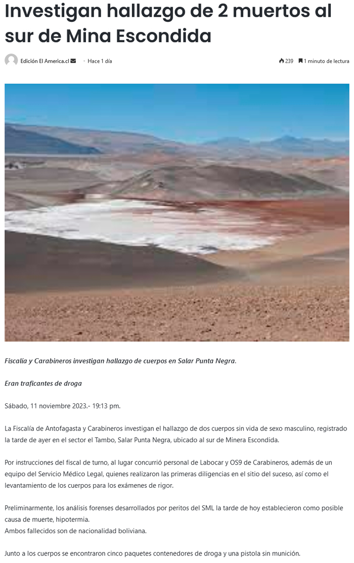 Fiscalía y Carabineros investigan hallazgo de cuerpos en Salar Punta Negra al sur de Minera Escondida - (elmejillonino.cl)