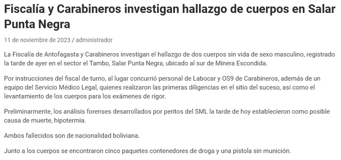 Fiscalía y Carabineros investigan hallazgo de cuerpos en Salar Punta Negra al sur de Minera Escondida - (elmejillonino.cl)