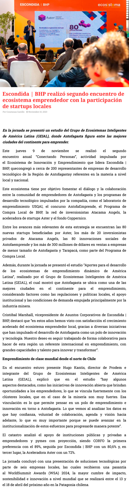 Escondida | BHP realizó segundo encuentro de ecosistema emprendedor con la participación de startups locales - (anfagasta.tv)
