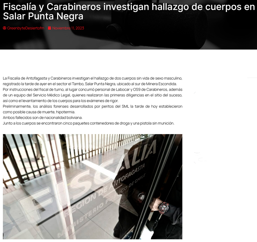 Fiscalía y Carabineros investigan hallazgo de cuerpos en Salar Punta Negra al sur de Minera Escondida - (elmejillonino.cl)