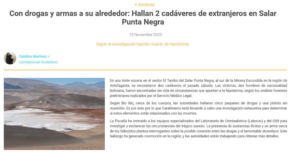 Con drogas y armas a su alrededor: Hallan 2 cadáveres de extranjeros en Salar Punta Negra - (elnortero)
