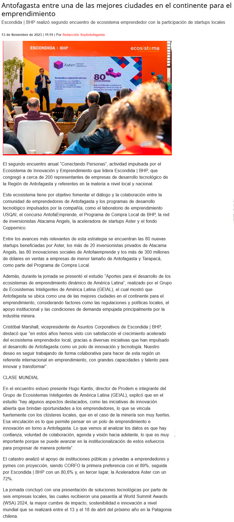 Escondida | BHP realizó segundo encuentro de ecosistema emprendedor con la participación de startups locales - (timeline)