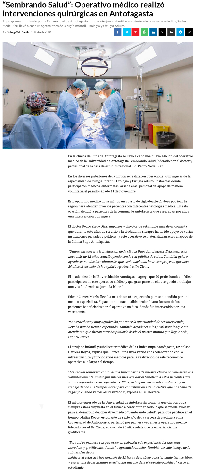 Operativo “Sembrando Salud” realizó intervenciones de baja complejidad - (El Mercurio de Antofagasta)