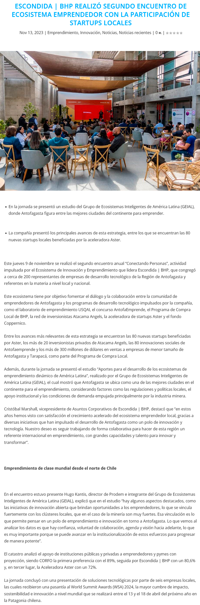 Escondida | BHP realizó segundo encuentro de ecosistema emprendedor con la participación de startups locales - (timeline)