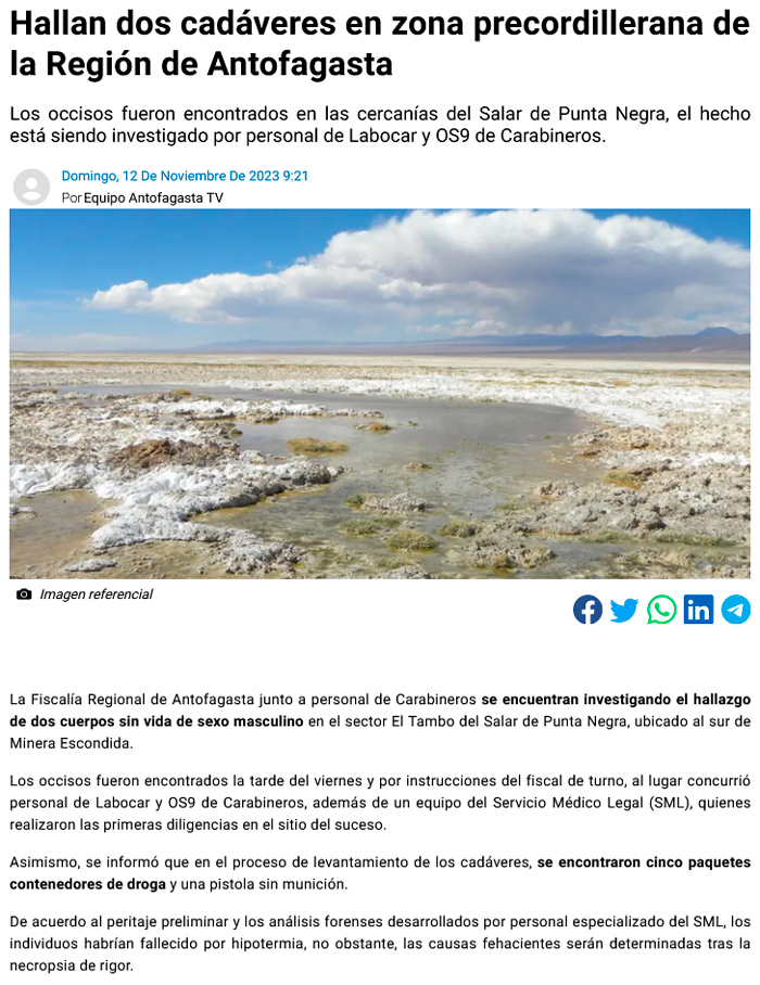 Con drogas y armas a su alrededor: Hallan 2 cadáveres de extranjeros en Salar Punta Negra - (elnortero)
