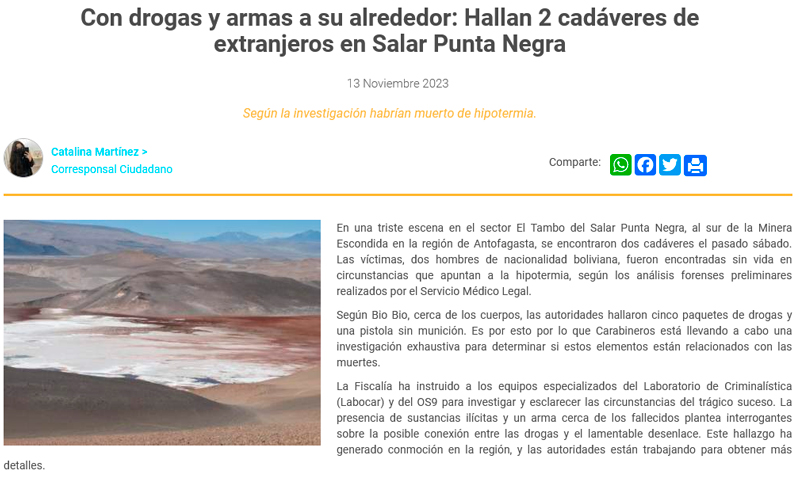 Con drogas y armas a su alrededor: Hallan 2 cadáveres de extranjeros en Salar Punta Negra - (elnortero)