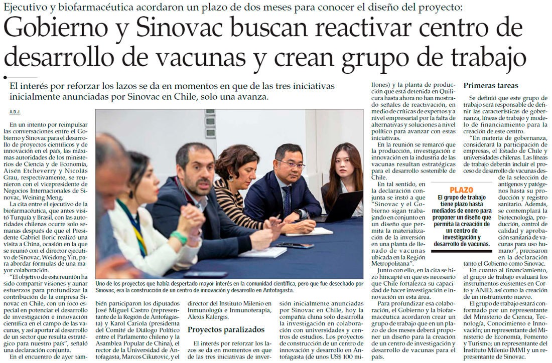 Gobierno y Sinovac acuerdan crear grupo de trabajo para retomar creación de centro de vacunas en Chile - (Pulso)