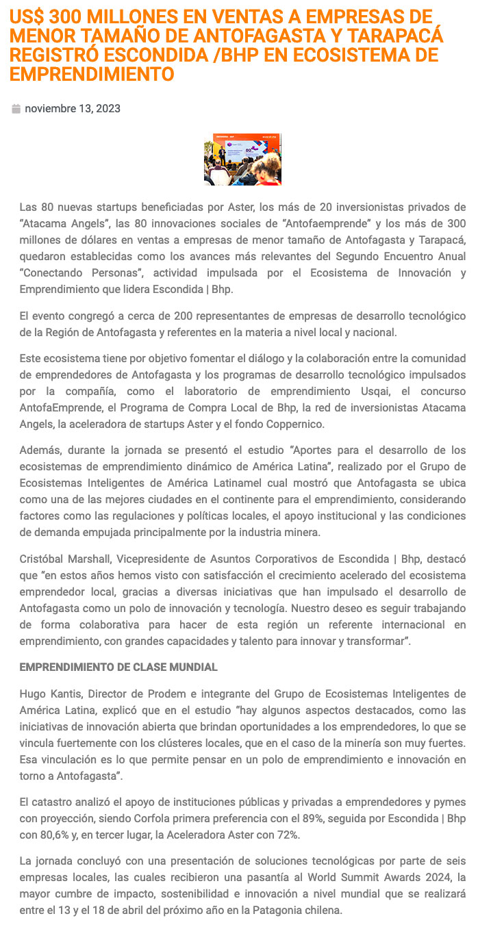 Escondida | BHP realizó segundo encuentro de ecosistema emprendedor con la participación de startups locales - (timeline)