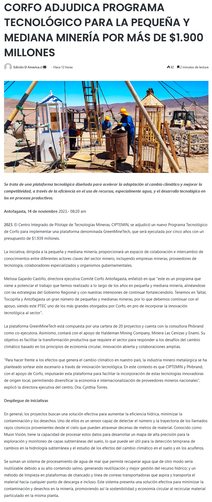 Adjudican $1,939 millones a programa tecnológico para la pequeña minería - (El Mercurio de Antofagasta)