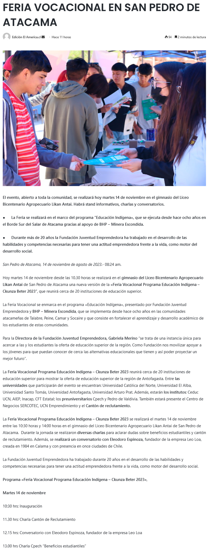 Feria vocacional llega a San Pedro de Atacama con amplia oferta académica - (portalindigena.cl)