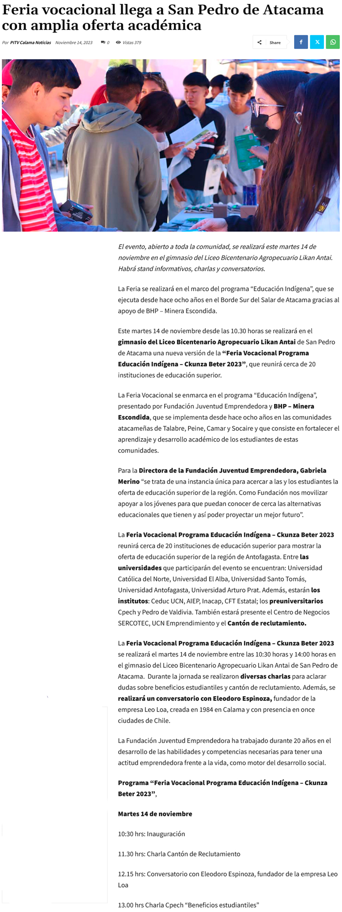 Feria vocacional llega a San Pedro de Atacama con amplia oferta académica - (fm7.cl)