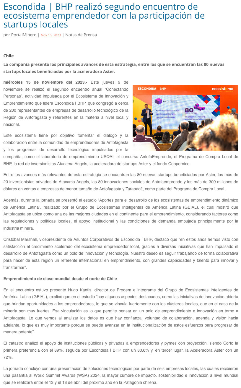 Escondida | BHP realizó segundo encuentro de ecosistema emprendedor con la participación de startups locales - (enfoquenoticias.cl)