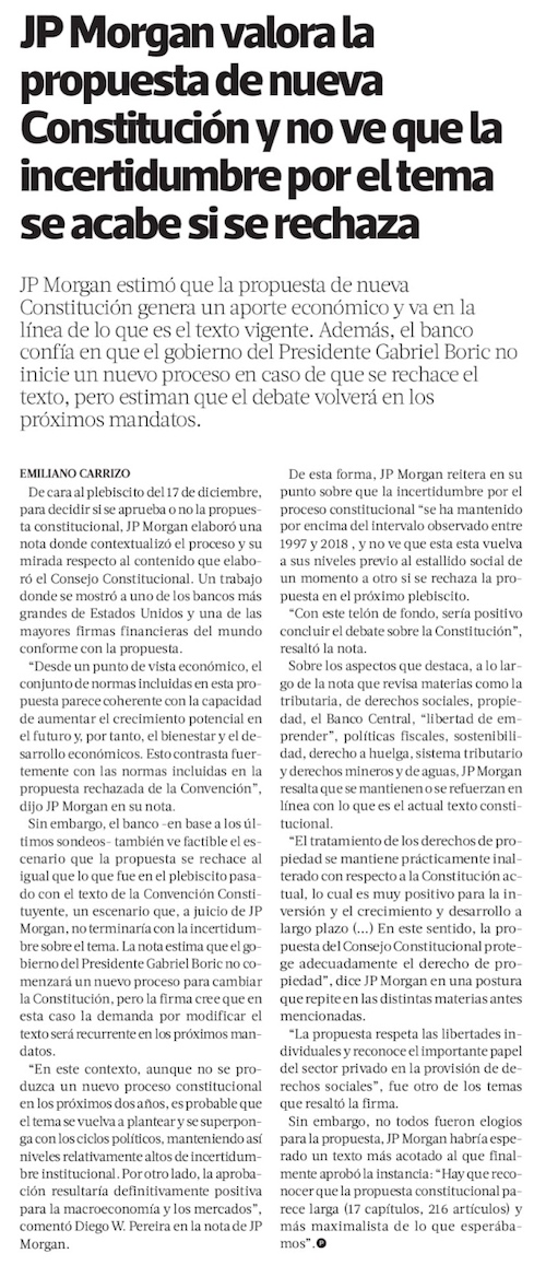 JPMorgan: nueva Constitución puede terminar con incertidumbre - (El Mercurio de Santiago)