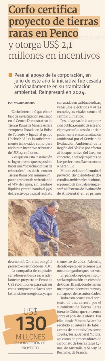 Corfo entrega certificado en I+D al proyecto de tierras raras de Penco - (Estrella de Concepción)