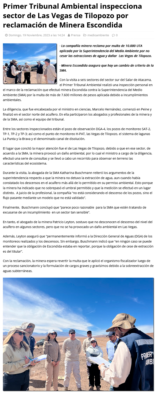 Primer Tribunal Ambiental inspecciona sector de Las Vegas de Tilopozo por reclamación de Minera Escondida - (desiertofm.cl)