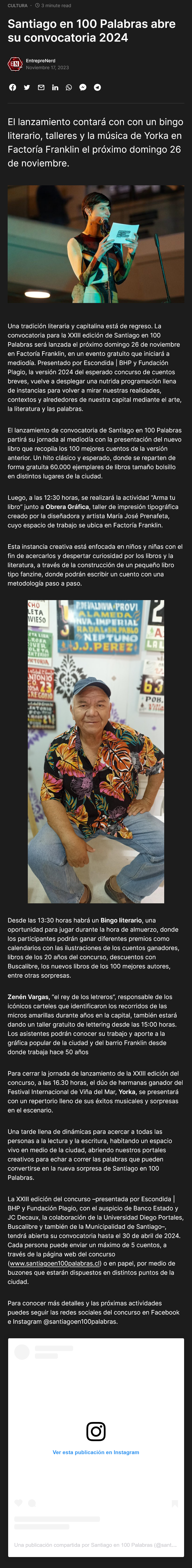 Santiago en 100 Palabras abre su convocatoria 2024 - (entreprenerd.cl)