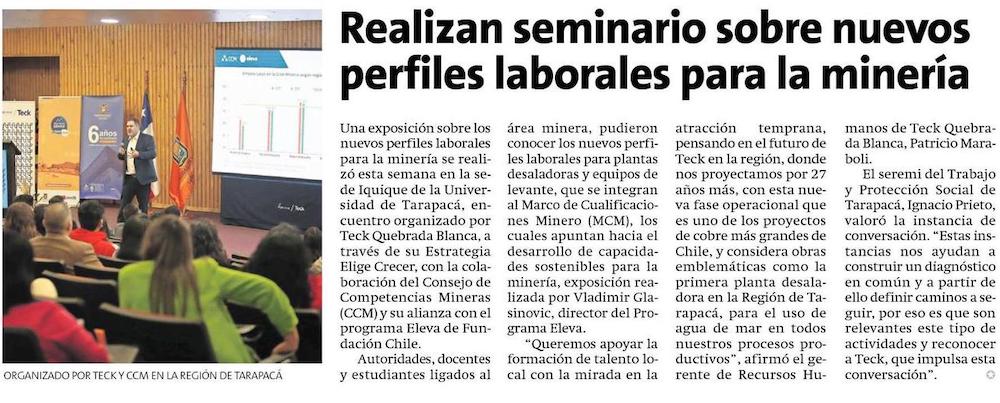Teck y CCM realizan seminario sobre nuevos perfiles laborales para la minerĂa de Tarapacá - (El Longino de Iquique)