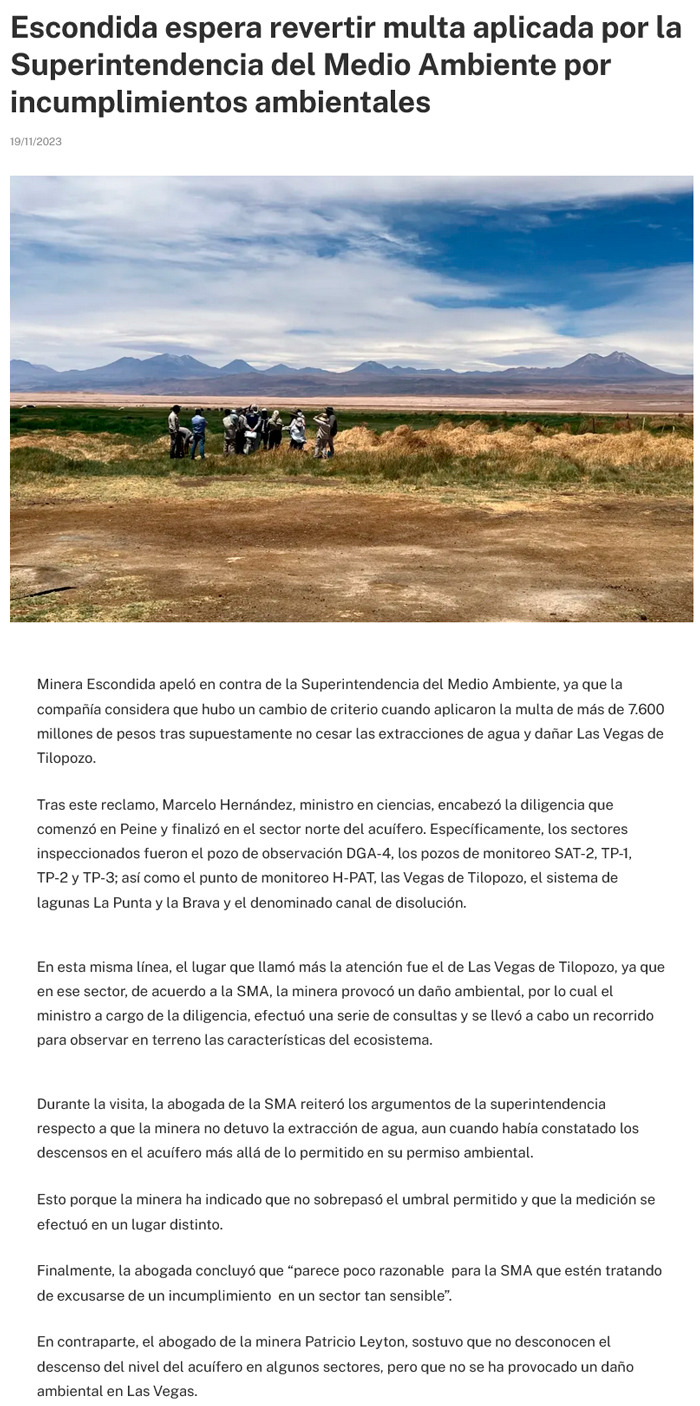 Primer Tribunal Ambiental inspecciona sector de Las Vegas de Tilopozo por reclamación de Minera Escondida - (desiertofm.cl)