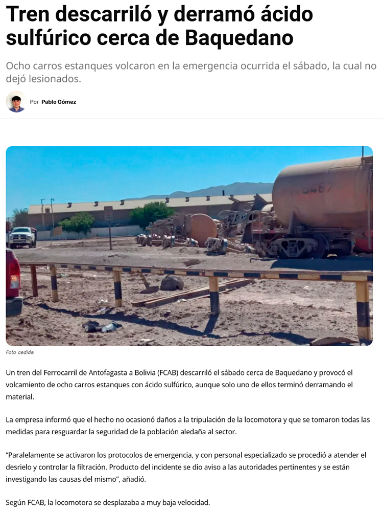 Tren con ácido sulfúrico volcó en Baquedano - (Hoy x hoy)