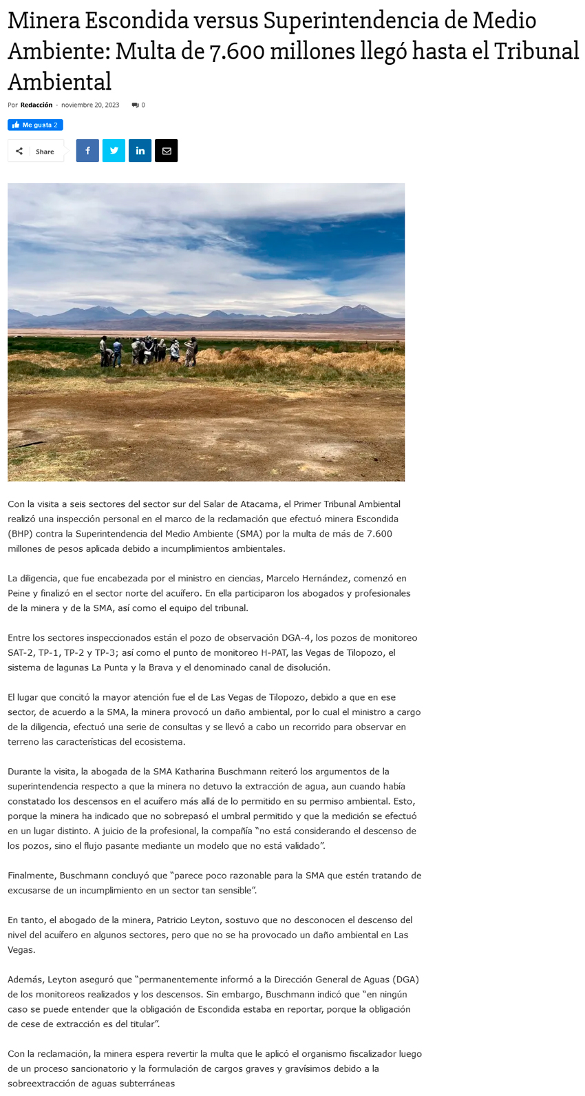 Primer Tribunal Ambiental inspecciona sector de Las Vegas de Tilopozo por reclamación de Minera Escondida - (diarioconstitucional.cl)