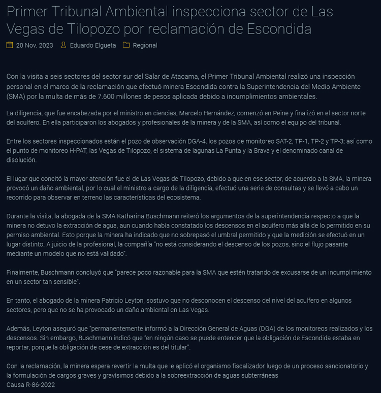 Primer Tribunal Ambiental inspecciona sector de Las Vegas de Tilopozo por reclamación de Minera Escondida - (diarioconstitucional.cl)