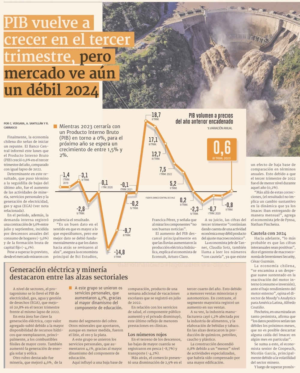 Tras mejores datos, analistas suben cálculo del PIB de este año a 0% - (El Mercurio de Santiago)