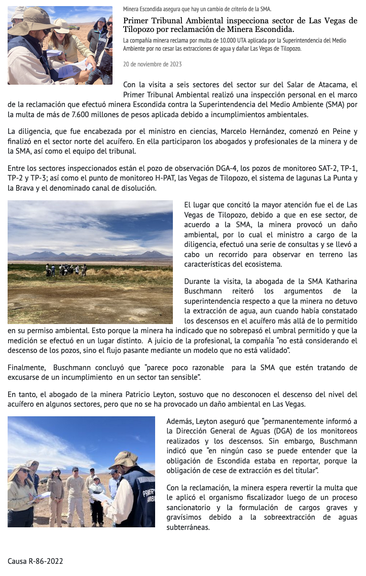 Primer Tribunal Ambiental inspecciona sector de Las Vegas de Tilopozo por reclamación de Minera Escondida - (diarioconstitucional.cl)