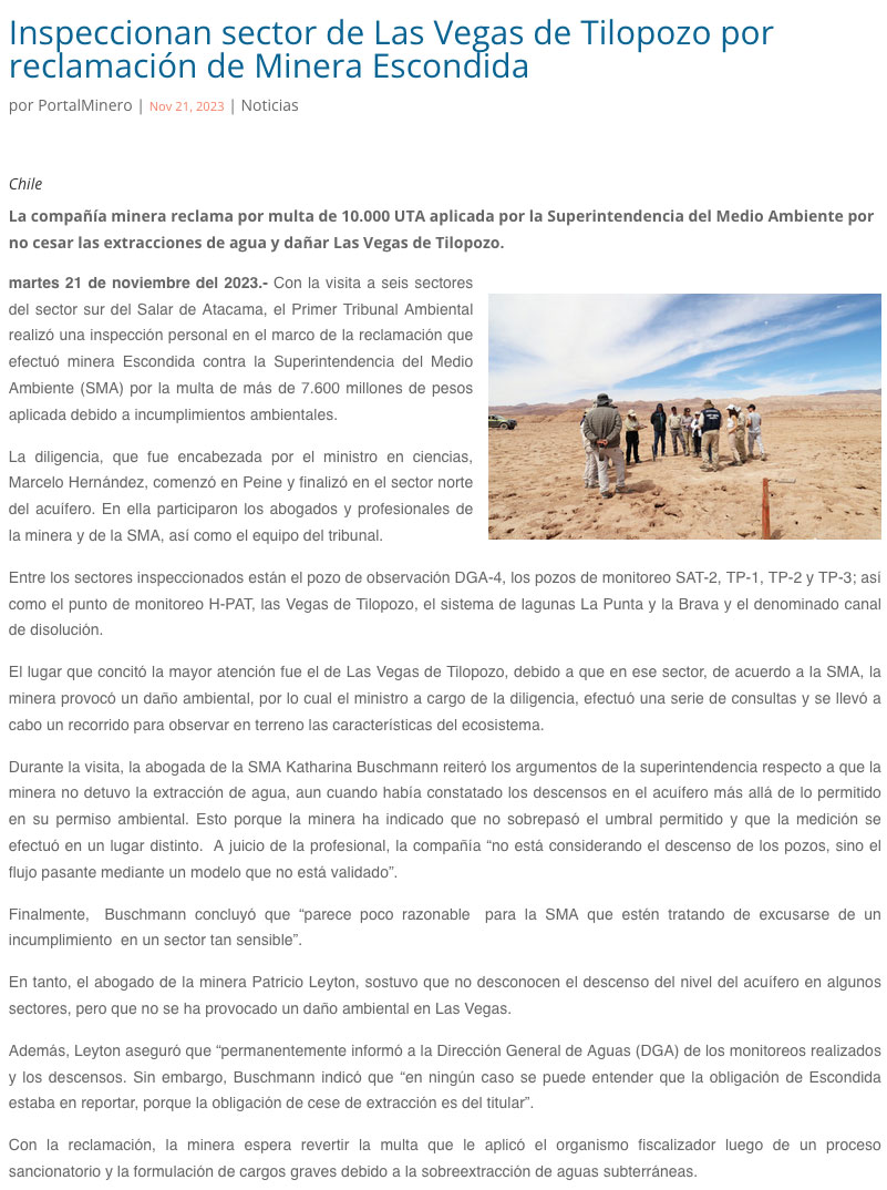Tribunal Ambiental inspecciona sector de Las Vegas de Tilopozo por reclamación de minera - (mch.cl)