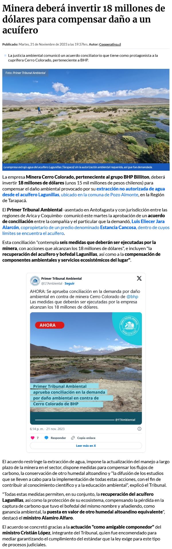 Aprueban conciliación en demanda contra Cerro Colorado - (El Mercurio de Santiago)